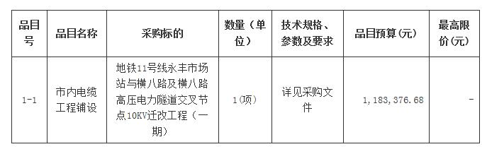 合同包1(地铁11号线永丰市场站与横八路及横八路高压电力隧道交叉节点10KV迁改工程(一期)):