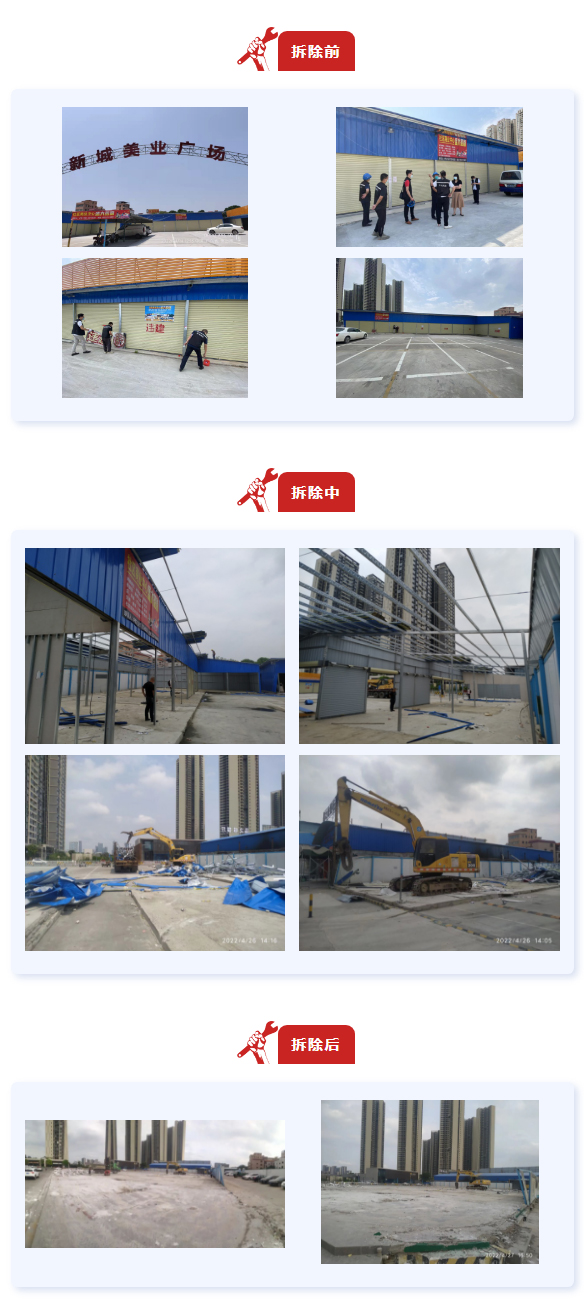经过耐心普法,当事人认清了形势,积极整改,对违建进行了自行拆除。4月27日,执法部门到现场查看,已全部拆除完毕。