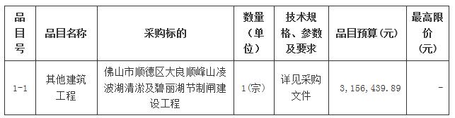 合同包1(佛山市顺德区大良顺峰山凌波湖清淤及碧丽湖节制闸建设工程):