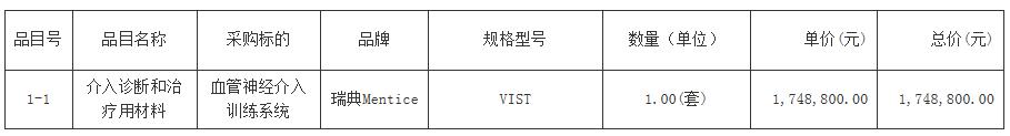合同包1(血管神经介入训练系统1套): 1.347734万元。收取对象:中标(成交)供应商。