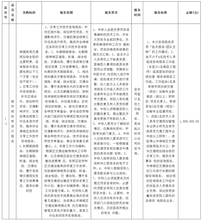 二、项目名称:禅城区交通运输局综合交通规划咨询服务(2022-2023年度)