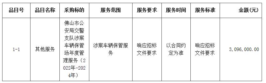 合同包1(佛山市公安局交警支队涉案车辆保管场年度管理服务(2022年-2024年)):