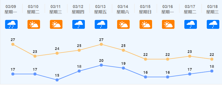 佛山:今日夜间气温逐步下降据佛山市气象台今早发布消息,预计9日将继续受南风影响,阴天为主,偶有阵雨,天气潮湿;夜间冷空气南下,有中雨、北风加大、气温下降;10日-11日白天多云为主,可见阳光,潮湿天气缓解;早晚天气寒凉,白天气温上升较快,昼夜温差加大。