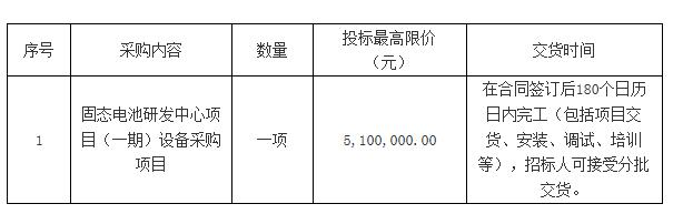 2、项目名称:固态电池研发中心项目(一期)设备采购项目