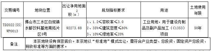 五、有意参与竞买者可于2022年4月29日后登录网上交易系统下载TD2022(SS)WP0013地块的《佛山市三水区国有建设用地使用权网上拍卖出让文件》。