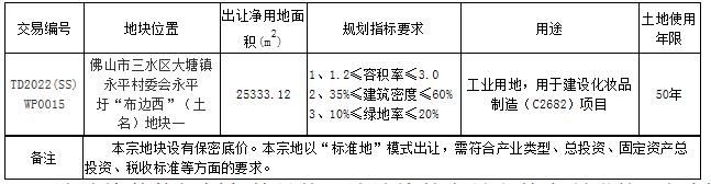 五、有意参与竞买者可于2022年4月29日后登录网上交易系统下载TD2022(SS)WP0015地块的《佛山市三水区国有建设用地使用权网上拍卖出让文件》。