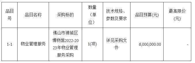 佛山市禅城区博物馆2022-2023年物业管理服务采购项目(二次)招标公告