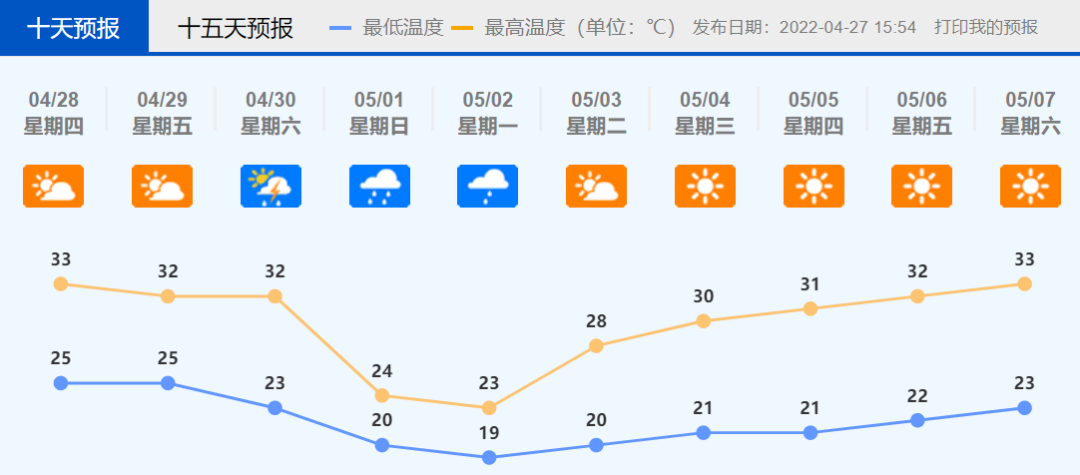 近5天,佛山的最高气温都在30℃以上,昨天(4月27日)顺德的气温达到了33.6℃。五一假期即将来临,天气还会这么热吗?不用担心,冷空气已经安排上。这个五一不仅有冷空气,热带扰动也来“凑热闹”了。
