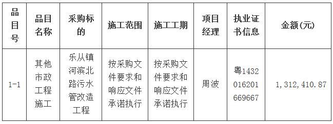合同包1(乐从镇河滨北路污水管改造工程): 0.97495万元。