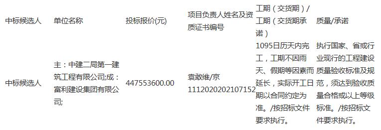 中标候选人:中建二局第一建筑工程有限公司与富利建设集团有限公司联合体