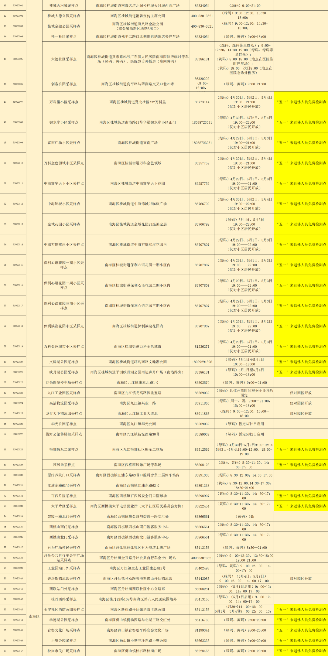 佛山市便民核酸采样点一览表