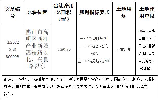 五、有意参与竞买者可于2022年4月29日后登录网上交易系统下载该地块的《佛山市高明区国有建设用地使用权网上挂牌出让文件》。