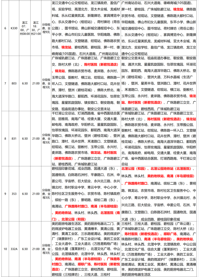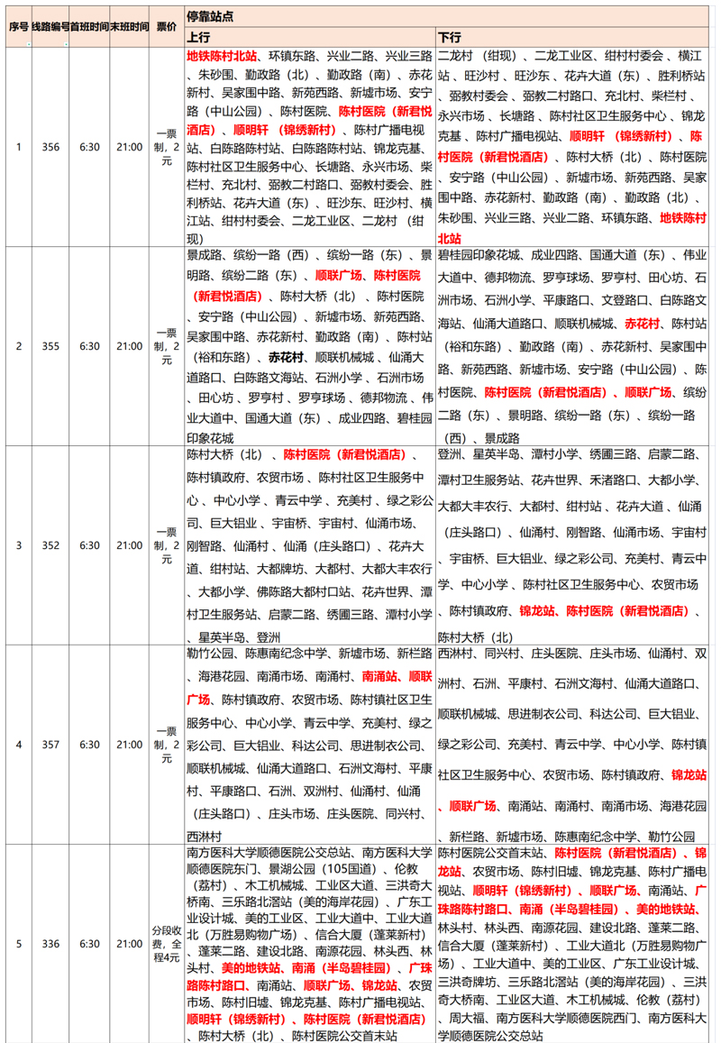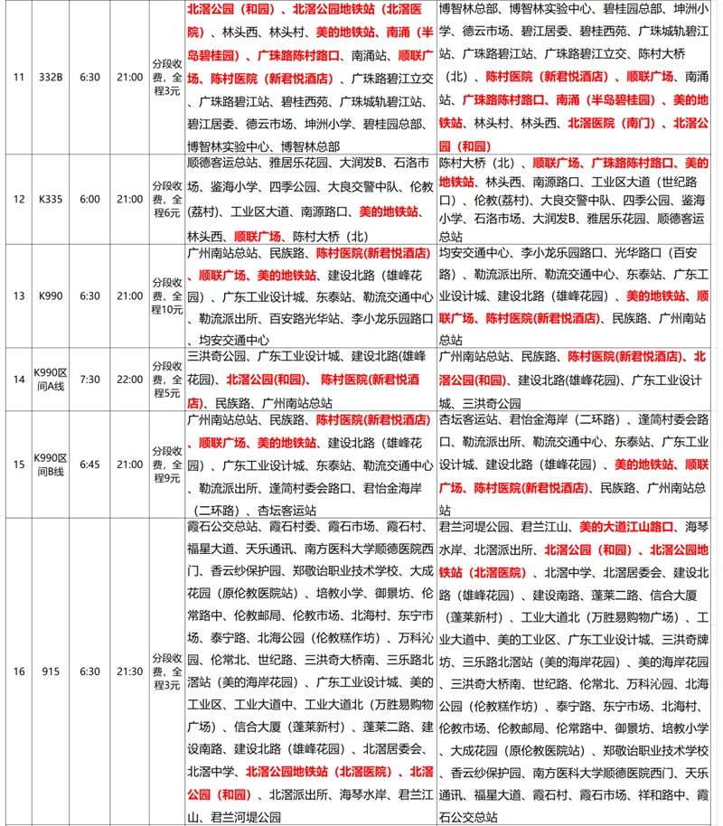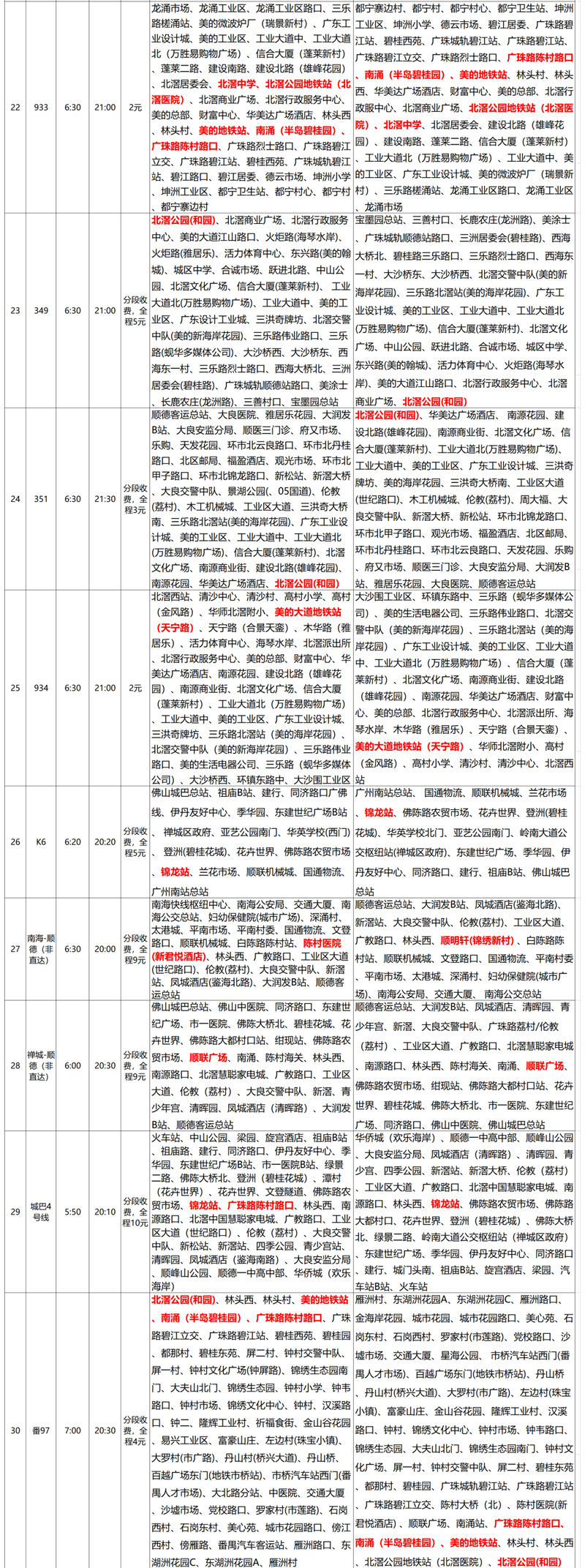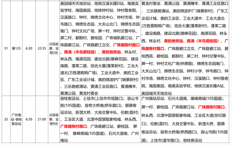佛山公交接驳广州地铁7号线西延顺德段32条接驳公交线路明细