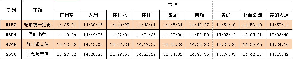 广州地铁7号线西延顺德段开通运营后,从起始端美的大道站至广州南站,全程运行时间约为22分钟,从美的大道站至大学城南站,全程运行时间约为49分钟。美的大道、大学城南首班车分别为6:00、6:10,末班车分别为23:10、23:15。发车间隔和运营组织与一期采用同样标准,每天高峰时段将上线18列车,行车间隔约5分半钟。从美的大道至广州南站,全程票价5元/人次。