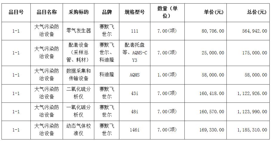 合同包1(环境空气气态污染物(SO2和CO)连续自动监测设备和校准设备和数据采集传输设备购置):