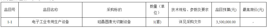 项目名称:广东中科半导体微纳制造技术研究院硅晶圆激光切割设备采购项目