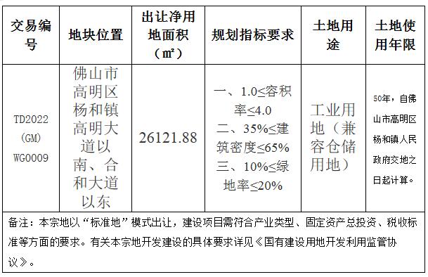 佛山市高明区杨和镇高明大道以南、合和大道以东国有建设用地使用权网上挂牌出让公告