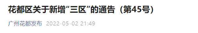 5月2日晚,广州市花都区新型冠状病毒肺炎疫情防控指挥部办公室发布第45号通告,对新雅街划定封控区、管控区和防范区。