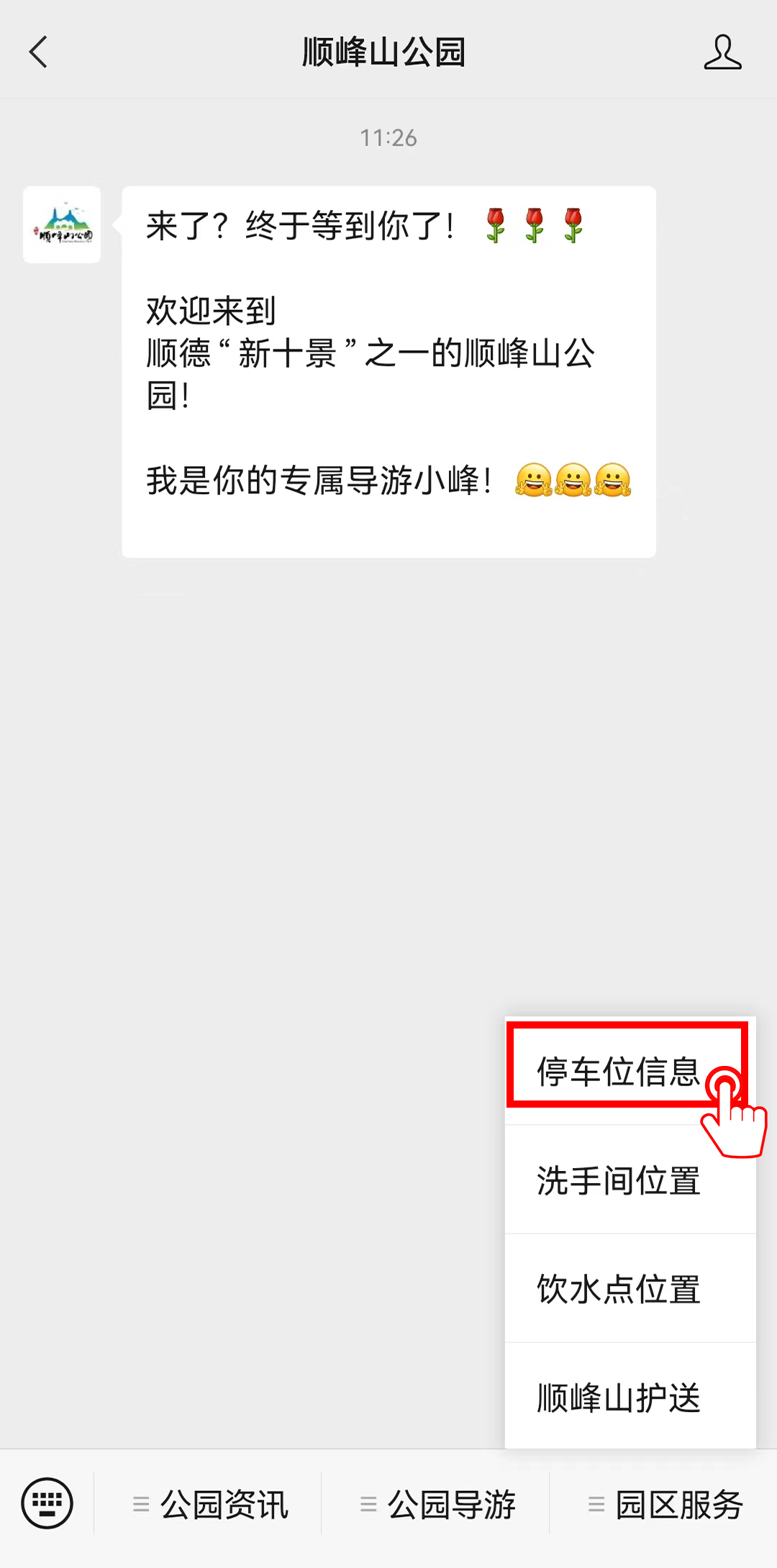 第二步:点击下方菜单栏,选择“园区服务”—“停车位信息”