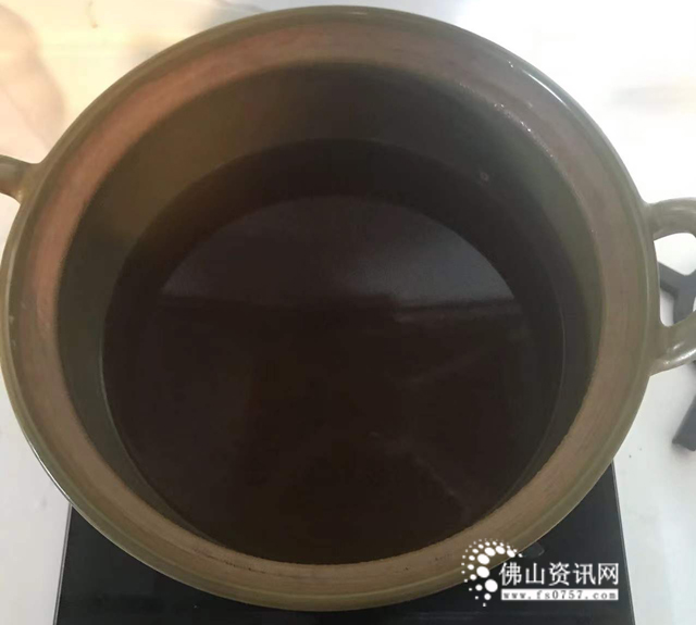 3.灵芝提前煲出水,把灵芝水倒入砂锅里。