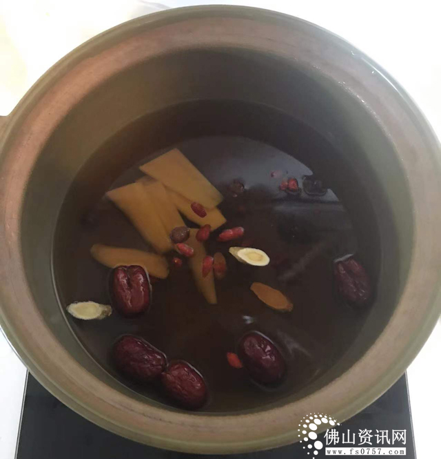 4.将姜片,红枣,枸杞,桂圆肉,黄芪放入砂锅中烧开。