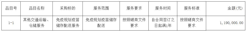 合同包1(免疫规划疫苗储存配送服务): 1.6520万元。收取对象:中标(成交)供应商。