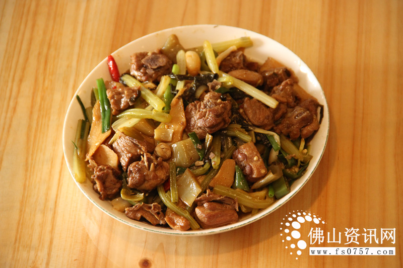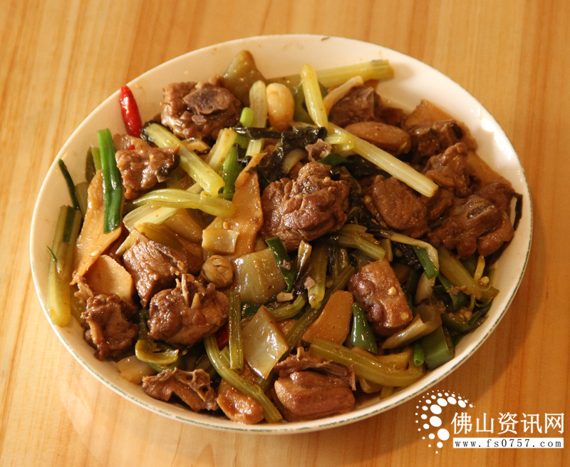 8.用筷子戳一下鸭肉,觉得可以插入就可以放入芹菜和青辣椒,盖上锅盖焖5分钟就可以大火收汁。