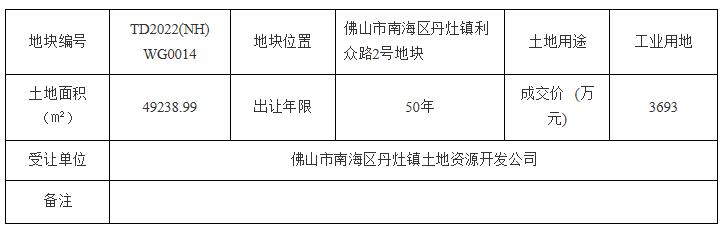 佛山市南海区丹灶镇利众路2号地块结果公告