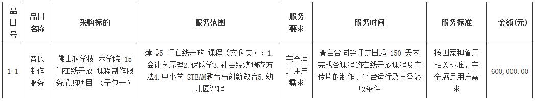 佛山科学技术学院15门在线开放课程制作服务采购项目(子包一)结果公告