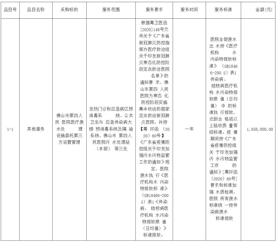 二、项目名称:佛山市第四人民医院医疗废水处理设施委托第三方运营管理