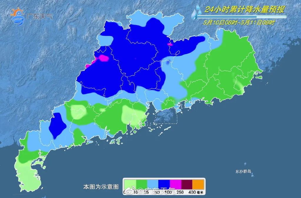 另据佛山市气象台5月8日预报,5月10日佛山市有中雷雨;5月11日有大雨,局部暴雨;5月12日、13日有暴雨、局部大暴雨。