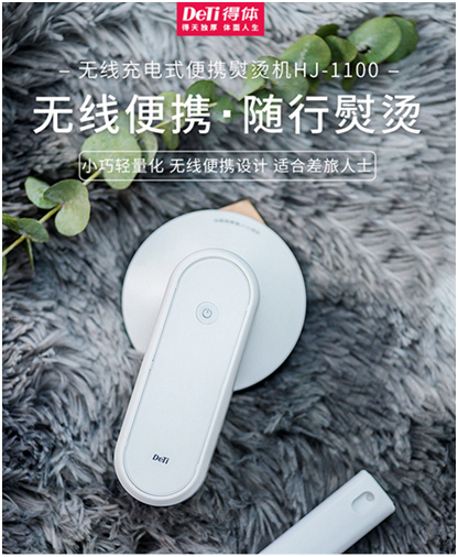 DeTi得体迷你无线熨烫机首先是外观和传统熨烫机不同,没有大块头的机身,也没有沉甸甸的水箱,机身大小尺寸为176×94×70mm,仅重420g,和大家平常用的手机差不多重,而且还是无线设计。
