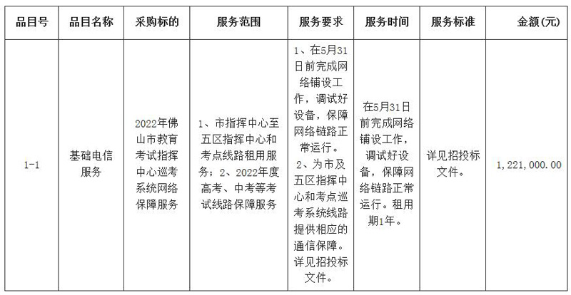 二、项目名称:2022年佛山市教育考试指挥中心巡考系统网络保障服务项目