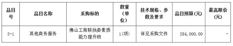 合同包3(佛山工商联执委素质能力提升班)特定资格要求如下: