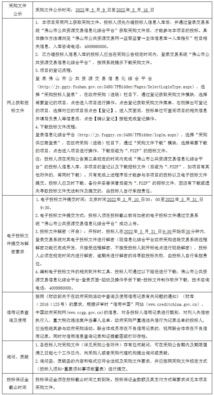 本项目采用电子化采购模式,投标人须按照电子采购文件要求,登录佛山市公共资源交易信息化综合平台进行网上获取采购文件和递交电子投标文件参与投标。