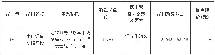 合同包1(地铁11号线永丰市场站横八路交叉节点通信管线迁改工程):