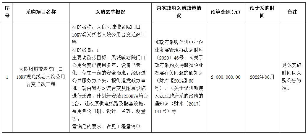 为便于供应商及时了解政府采购信息,根据《财政部关于开展政府采购意向公开工作的通知》(财库〔2020〕10号)等有关规定,现将本单位2022年05月至2022年06月采购意向公开如下: