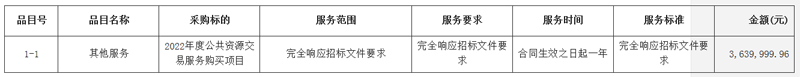 二、项目名称:2022年度公共资源交易服务购买项目