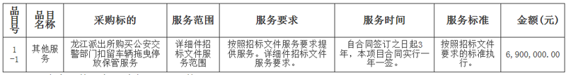 二、项目名称:龙江派出所购买公安交警部门扣留车辆拖曳停放保管服务项目