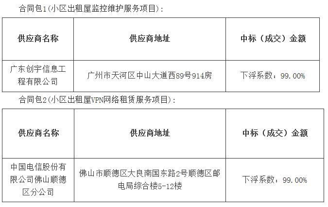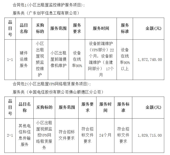 顺德区小区出租屋监控维护服务及VPN网络租赁服务项目中标公告