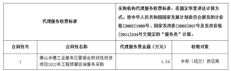 佛山中德工业服务区管委会财政性投资项目2022年工程预算咨询服务采购结果公告