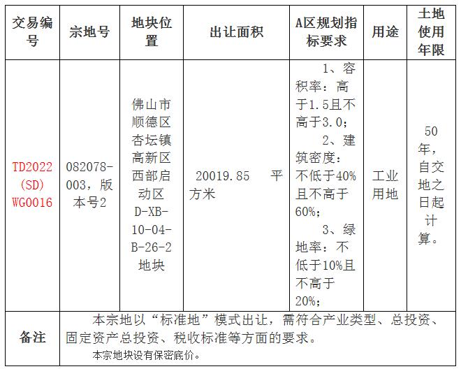 五、有意参与竞买者可于2022 年5月12日后登录网上交易系统下载TD2022(SD)WG0016 地块的《佛山市顺德区国有建设用地使用权网上挂牌出让文件》。