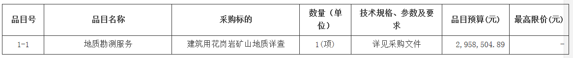 合同包1(高明区更合镇石山庙岭矿区建筑用花岗岩矿山地质详查(第二次)):