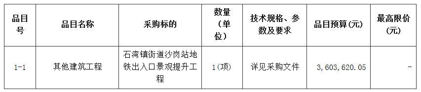 合同包1(石湾镇街道沙岗站地铁出入口景观提升工程):