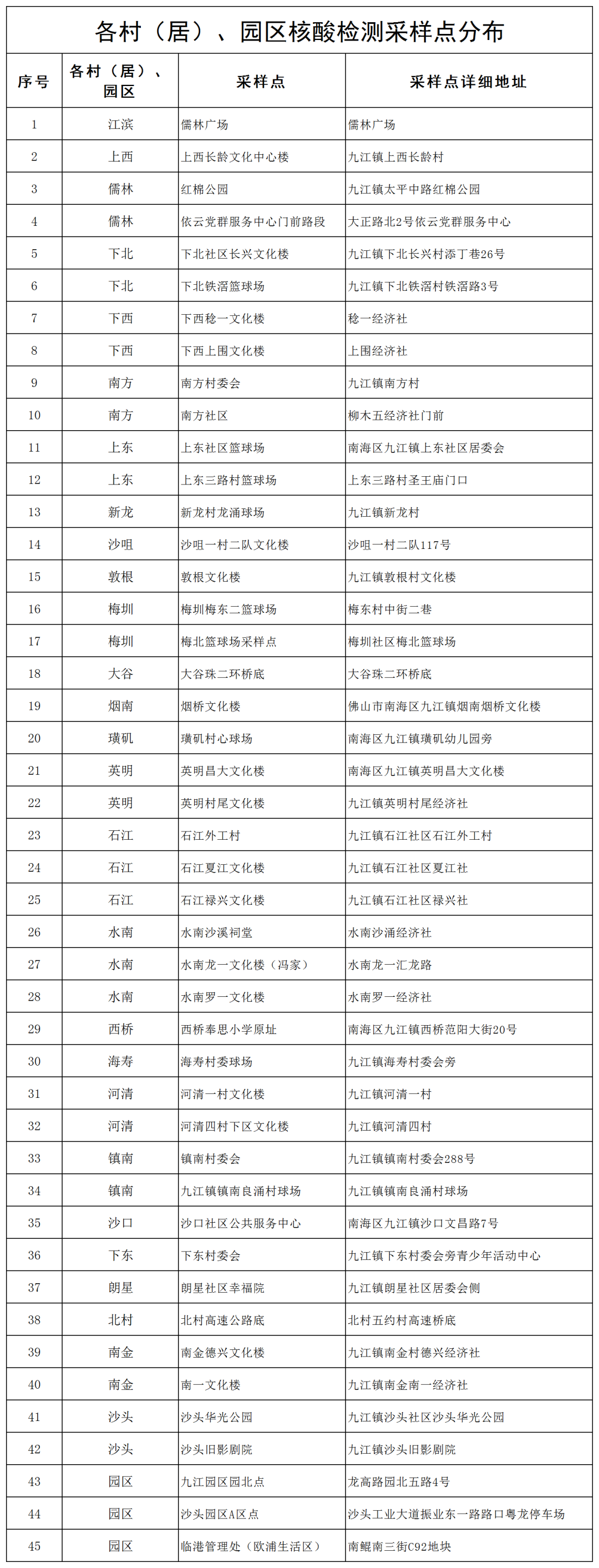 附件:九江镇各村(社区)、工业园区域核酸采样地点