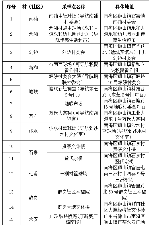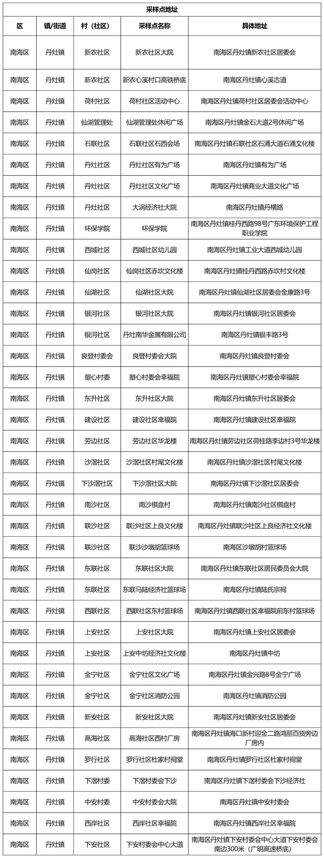 南海区丹灶镇开展区域核酸检测工作通告(核酸采样点)