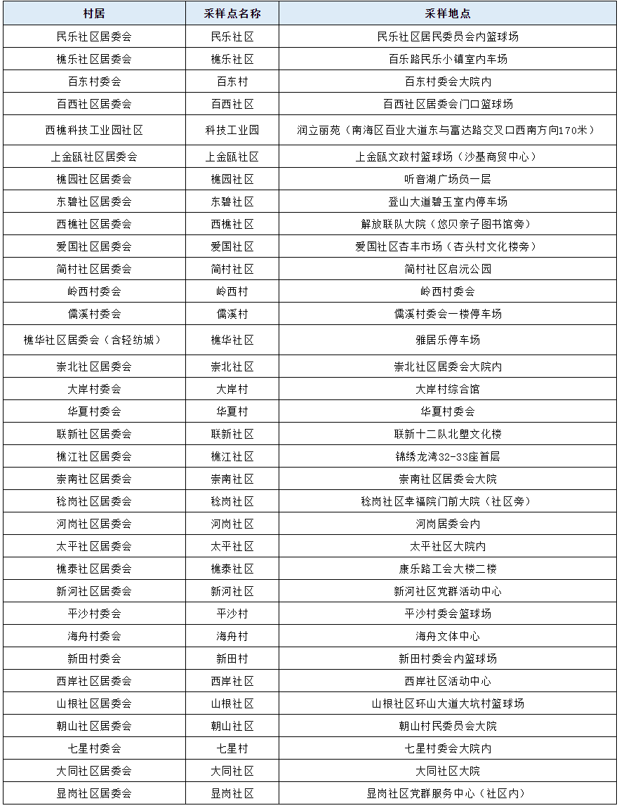 附件:西樵镇各村(社区)、镇科技工业园区域核酸采样地点