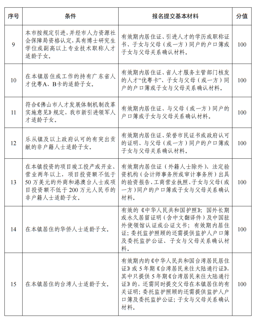 (十二)乐从镇及以上人民政府认可的有突出贡献的非户籍人士适龄子女。