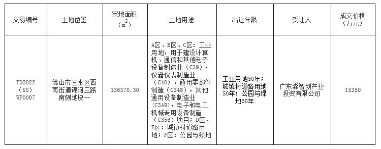 佛山市三水区国有建设用地使用权网上拍卖出让成交公告