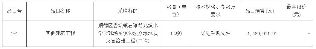 合同包1(顺德区杏坛镇右滩胡兆炽小学篮球场东侧边坡崩塌地质灾害治理工程(二次)):